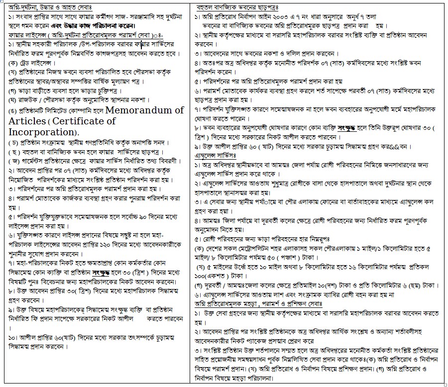 অগ্নিনির্বাপণ, উদ্ধার ও আহত সেবা